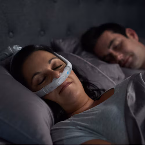 Dank intelligentem Design mit nach oben geführtem Schlauch ist der CPAP-Schlauch nicht im Weg und die Maske macht jede Drehung und Wendung problemlos mit. Der sich nahezu selbst anpassende Maskenrahmen und das doppelwandige Nasenpolsterkissen sorgen für einen stabilen, zuverlässigen Sitz der Maske.¹,² So können Sie sich nachts frei bewegen und die Schlafposition beliebig wechseln.